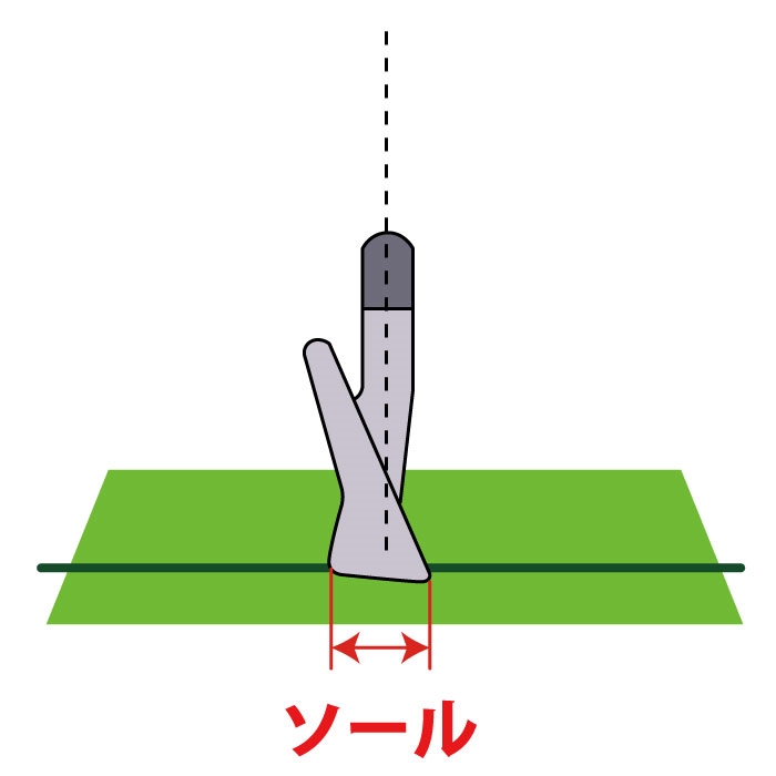 クラブヘッドの底の部分を「ソール」と呼ぶ