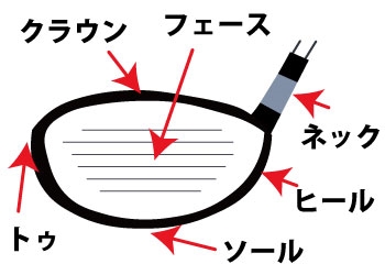 クラブヘッドのボールを打つ面を「フェース」と呼ぶ