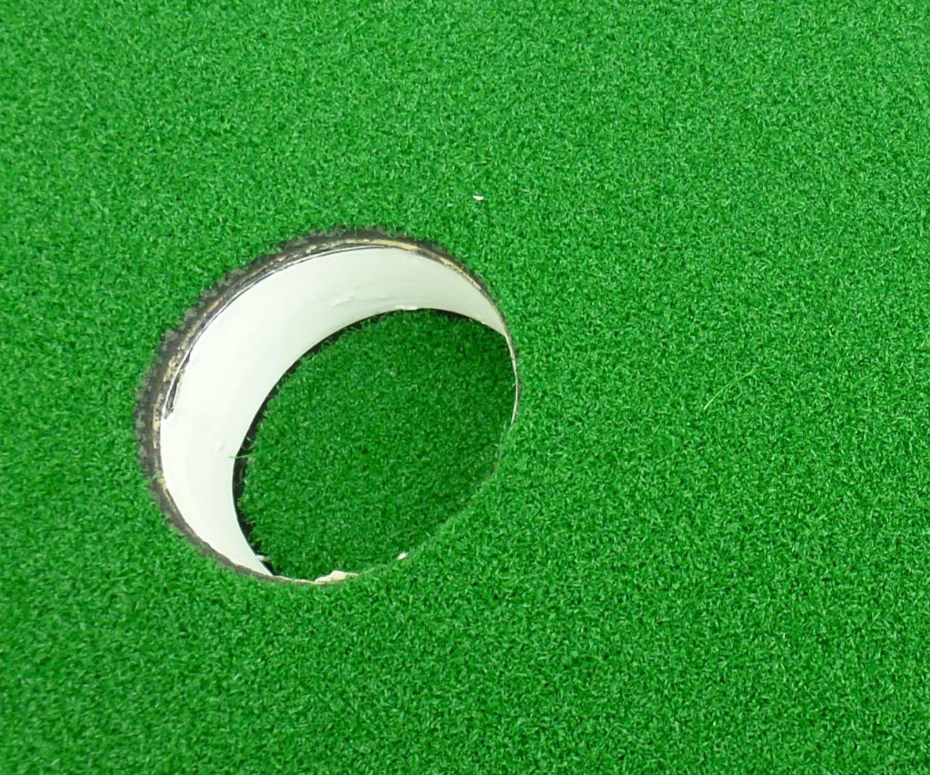 ボールを入れる穴で、大きさは直径4.25インチ(10.8cm)。その中央には旗の付いたピンが立つ。