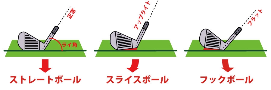 シャフトが立ってアップライトであると、一般的にボールがスライス軌道になりやすくなる。シャフトが寝てフラットであると、ボールがフック軌道になりやすいという特性がある。